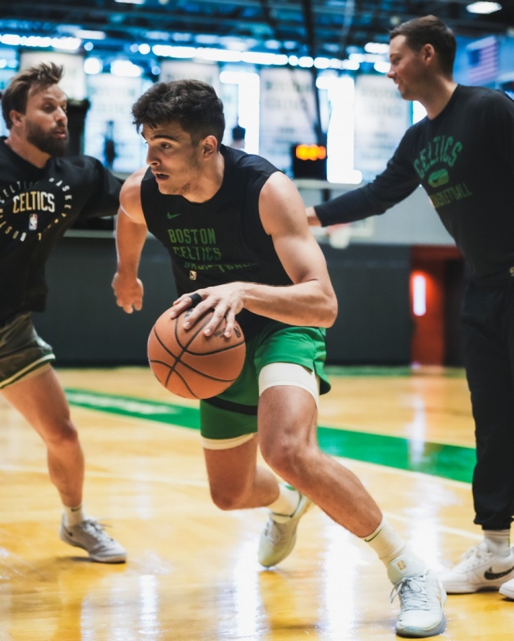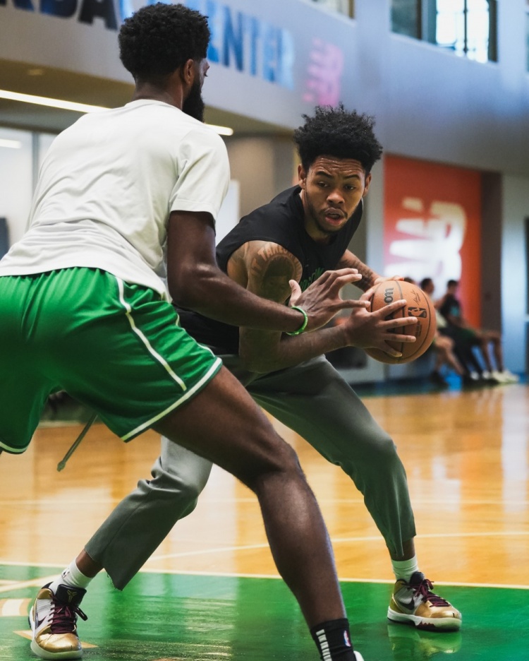 9月12日讯 今天,凯尔特人官方晒出了训练照,球队新援安芬尼-西蒙斯在列。