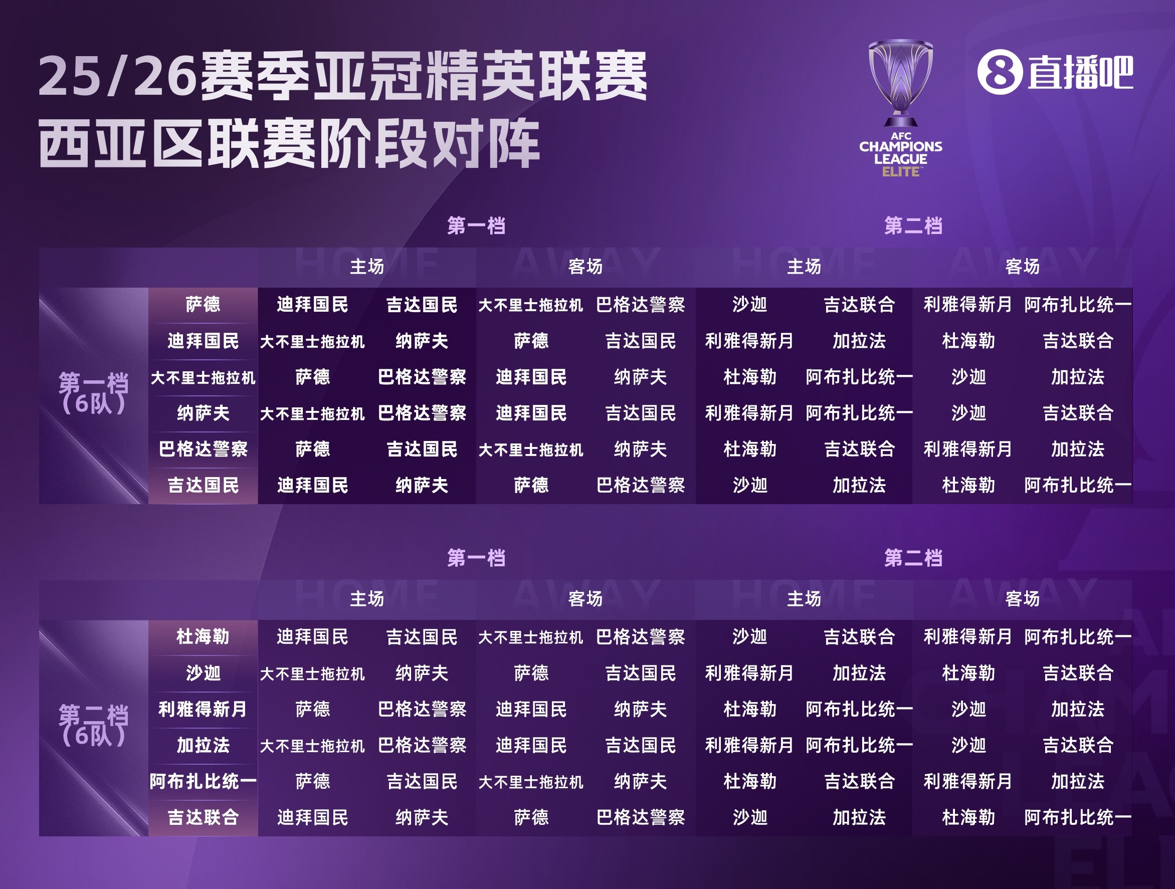 08月15日讯 25/26赛季亚冠精英联赛抽签仪式今天进行,中超三队联赛阶段的8个对手全部揭晓。